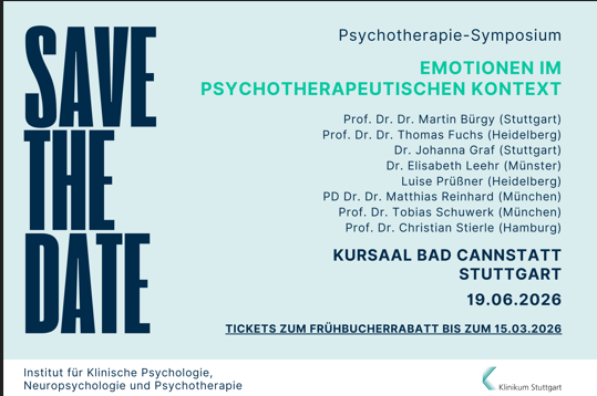 Save the date: Emotionen im Psychotherapeutischen Kontext – 19.06.2026 Kursaal Bad Cannstatt